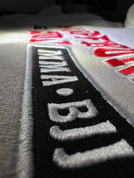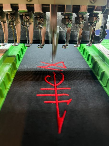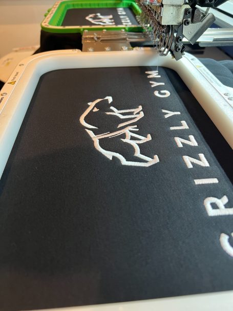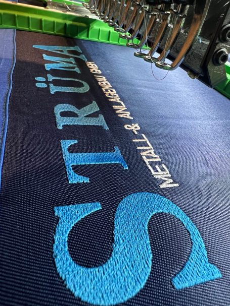 Individuelle Gestaltung von Firmenlogos auf Textilien.